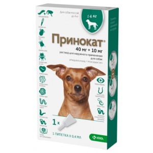 ПРИНОКАТ капли для собак до 4 кг на холку для обработки собак от наружных и внутренних паразитов.
